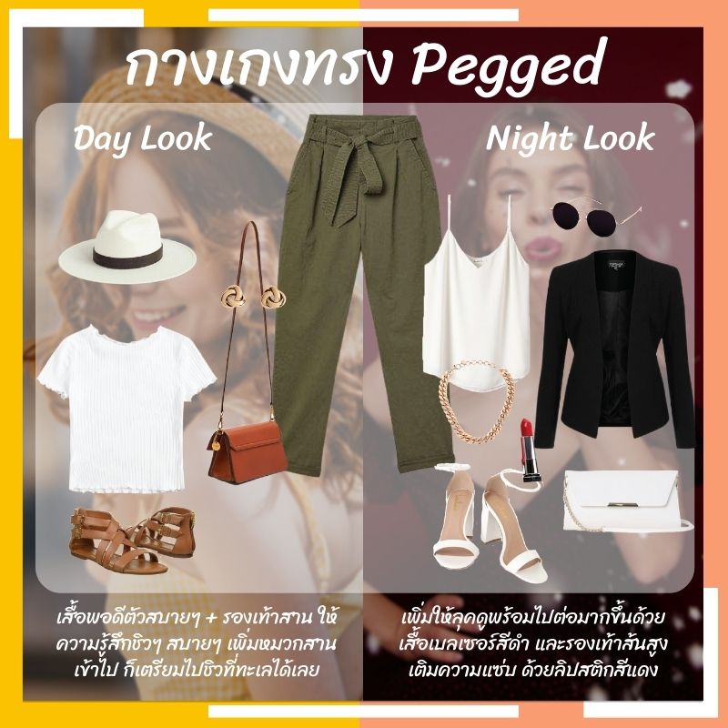 Night Look : กางเกงขายาว เอวสูง ปลายขาบานออกเพื่อสร้างสมดุลกับร่างกาย เติม accessories และกระเป๋า clutch เก๋ๆ เพื่อความชิตของลุค