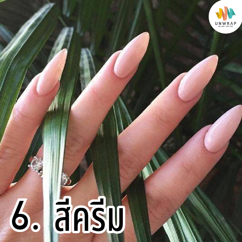 สาวคนไหนรู้สึกว่าสีขาวเด่นเกินไป หรือยังกังวลว่าไม่เหมาะกับตัวเอง ลองทาเล็บสีครีมดูคะ สีครีมจะกลืนไปกับผิวเรา ไม่ดูโดดออกมามาก และถ้าเลือกให้ถูกเฉด จะช่วยขับผิว ให้นิ้วของเราดูขาวขึ้นด้วยนะ