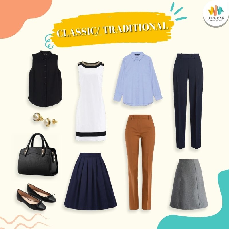 สไตล์นี้เป็นสไตล์ที่ดูมีความเป็นผู้ใหญ่ น่าเชื่อถือ เป็นไปตามระเบียบแบบแผน เป็นสไตล์ที่ไม่เปลี่ยนแปลงตามเวลาหรือกระแสแฟชั่น เสื้อผ้าของสไตล์นี้จะเป็นเสื้อผ้าที่ดูเรียบๆ เป็นทางการตามมาตรฐานสากล ไม่ว่าจะเป็นทั้งส่วนของรูปทรงหรือการตัดเย็บก็ตาม สไตล์นี้เสื้อผ้าจะออกโทนสีกลางๆหรือเข้ม ไม่มีสี ลวดลาย หรือลูกเล่นที่โดดเด่นออกมาเป็นพิเศษ
